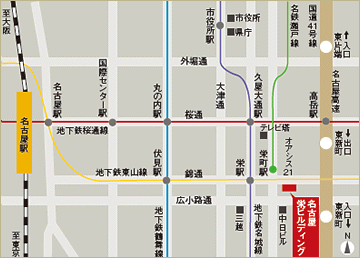 〒461-0008 愛知県 名古屋市東区武平町5丁目1番地 名古屋栄ビルディング12階 ![]() <地下鉄でお越しの場合> 東山線または名城線「栄」駅下車、5番出口から東へ徒歩1分 <お車でお越しの場合> 名古屋高速「東新町」 出口から3分 最寄りの有料駐車場をご利用ください。 愛知芸術文化センター 地下駐車場 セントラルパーク 地下駐車場 など |
