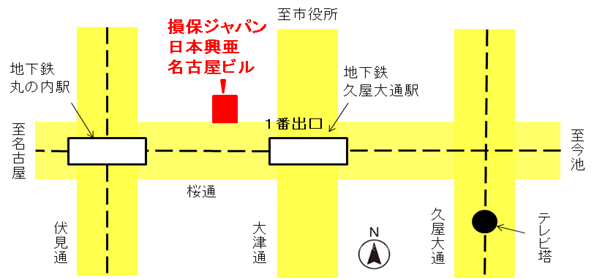 〒460-8551 愛知県 名古屋市中区丸の内3-22-21 ![]() 地下鉄 桜通線・名城線久屋大通駅 1番出口より西へ徒歩3分 地下鉄 鶴舞線・桜通線丸の内駅 4番出口より東へ徒歩5分 |